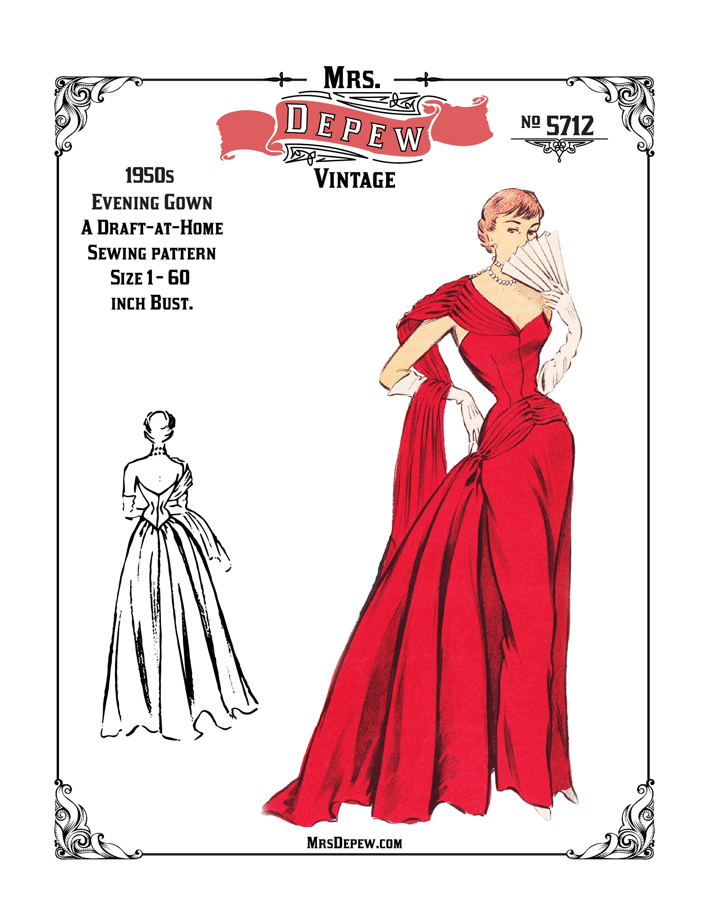 1950s Vintage Sewing Patterns Evening Dress Reproduction Lady Marlowe